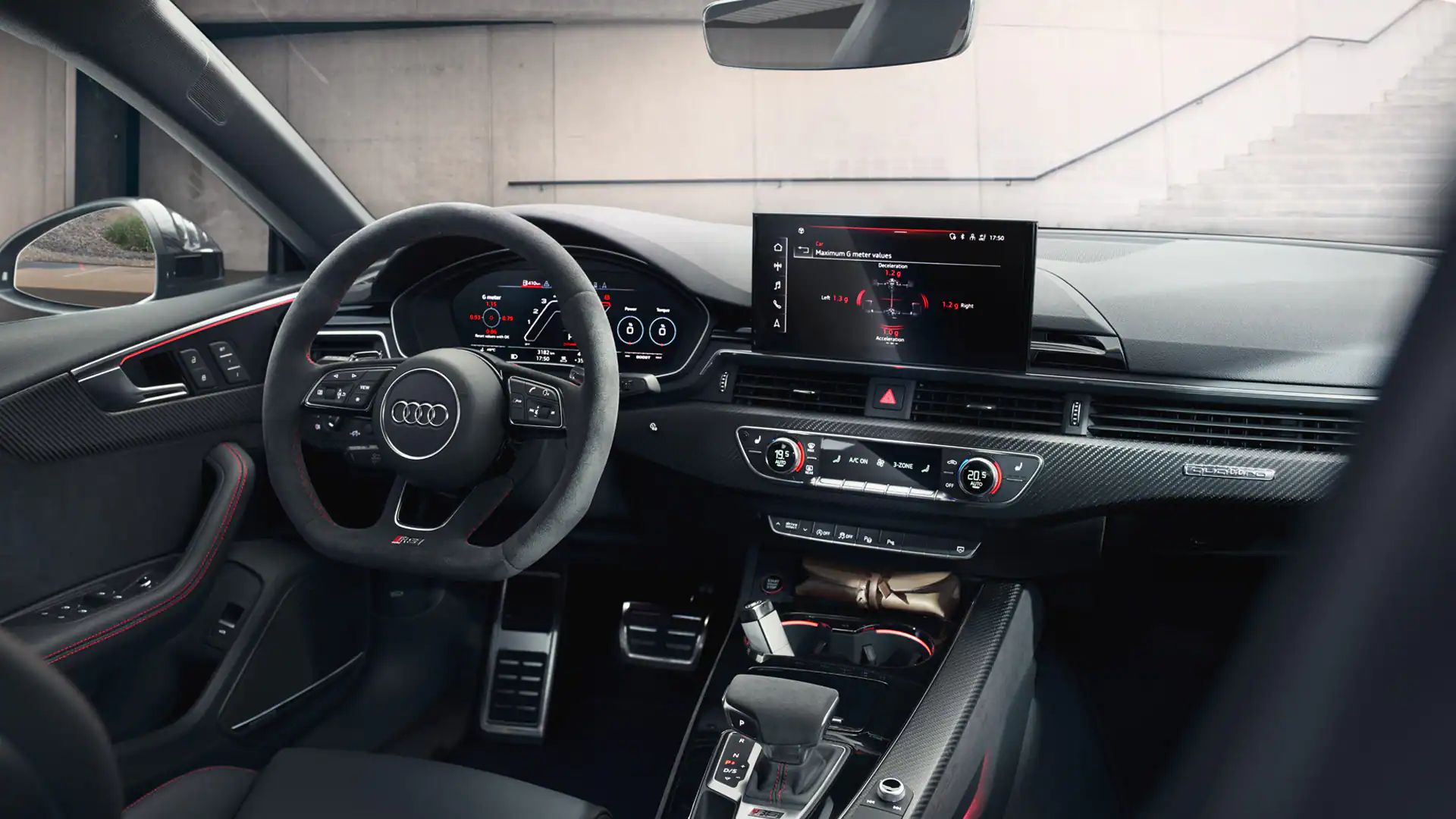Контролният център в Audi RS 5 Sportback излъчва чист спортен дух: например с опционалния дизайнерски пакет RS в червено с органи за управление и централна конзола отстрани в Alcantara и контрастни шевове в цвят crescendo червено. Стабилната странична опора и отличният комфорт при седене също са гарантирани при по-дълги пътувания благодарение на спортните седалки plus. Опционалният RS-специфичен Audi virtual cockpit plus с RS менюта и MMI сензорен дисплей предоставят важна информация за автомобила.