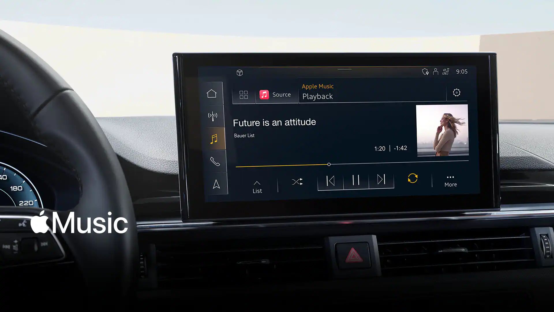 Насладете се на върховно музикално изживяване в колата си с Apple Music. Стриймвайте над 90 милиона песни безпроблемно и без реклами - директно през системата MMI на Вашия автомобил. Намерете любимите си песни и открийте още повече музика, която ще харесате. Изберете от три международни радиостанции на живо, водени от известни изпълнители, пускащи актуални хитове, класика и кънтри музика. Освен това имате достъп до Вашата лична музикална библиотека и можете да търсите изпълнители, заглавия, албуми и плейлисти.