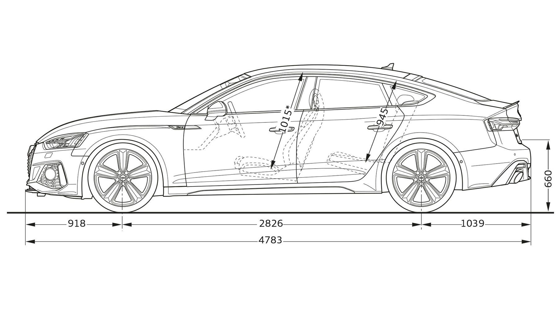 Размери на новия Audi RS 5 Sportback.